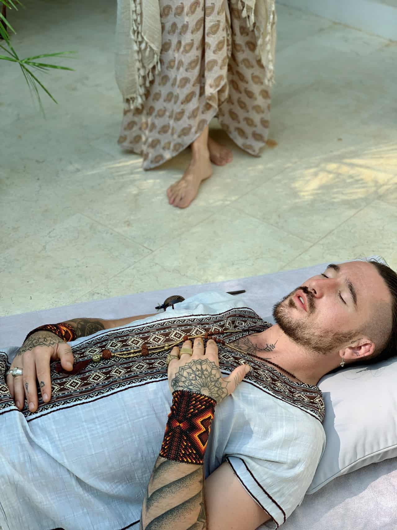 Each immersion begins by landing and grounding to get “out of the head and into the body” using yogic tools including breath-synergised movement and guided meditations to create heart-centered coherence within the group.